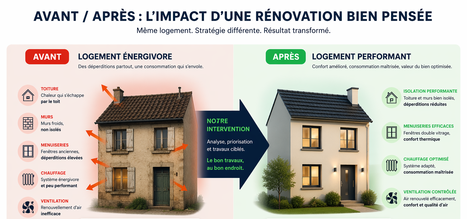 Un DPE ne s’améliore pas avec plus de travaux. Il s’améliore avec les bons travaux, au bon endroit.